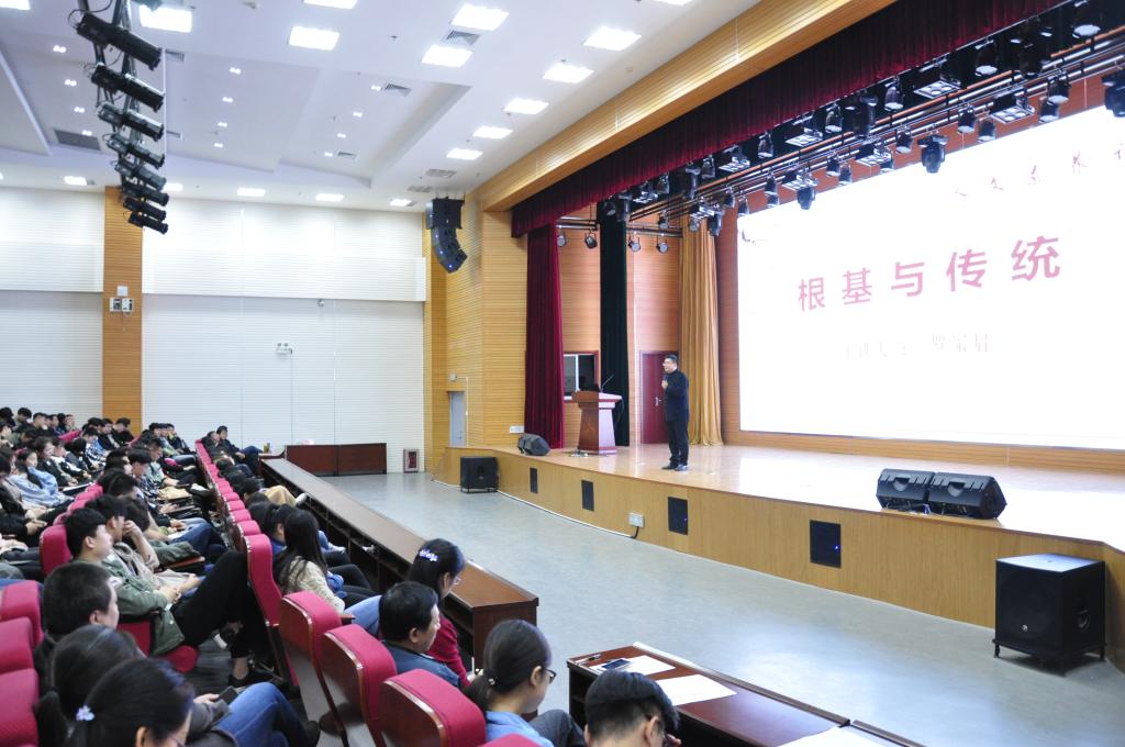 为更好地学习贯彻落实“潍坊市全面展开新旧动能转换重大工程暨‘四个城市’建设推进会议”精神,进一步提高我院师生对于新旧动能转换重大工程暨“四个城市”建设重要意义的认识,拓宽师生文化视野,提升师生人文素养,通识教育中心于4月12日下午特邀潍坊电台资深主持人罗家启来校作了题为《根基与传统》的专题讲座。讲座在滨海校区图书馆报告厅举行,党支部书记韩春妹主持,通识教育中心全体人员、滨海校区400余名学生代表到会听讲。