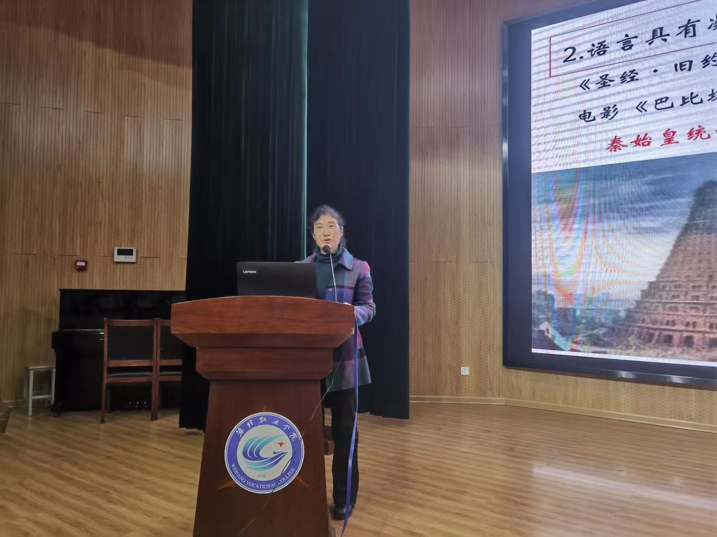 11月19日,学院第57场人文素养讲座在奎文校区16号楼报告厅举行,通识教育中心聂凌燕老师为同学们作了一场题为“探寻‘语文’之美”的讲座,奎文校区部分同学聆听了讲座。