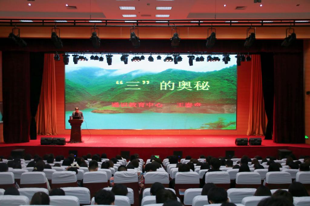 讲座从《道德经》“道生一,一生二,二生三,三生万物”论述出发,梳理了中华五千年文明史中与“三”息息相关的文化,如羲皇燧皇炎皇“三皇”、儒道佛“三教”、乡试会试殿试“三试”、中书门下尚书“三省”等,讲述了许多与“三”有关的成语典故,解读了数字“三”在万物进化、宗教礼仪、名人治学、修身养性等方面的奥妙,认为“三”是一个充满着神奇的数字,“人离不开数字,数字离不开三”。王海奇不仅介绍了丰富的传统文化知识,而且结合自己的传统文化学习经历,启发同学们重视传统文化的学习,鼓励同学们从传统文化中汲取营养。