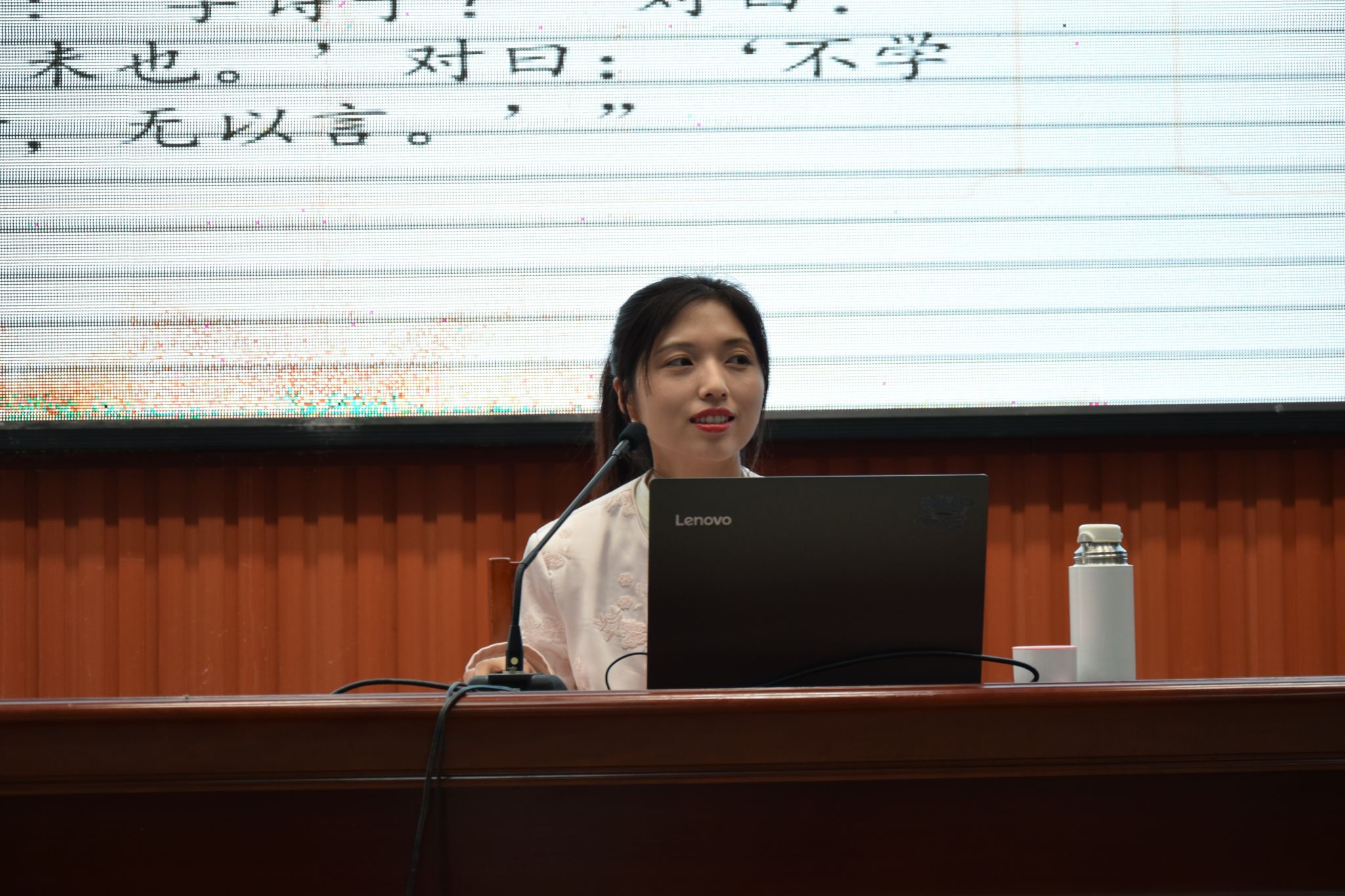 韩老师是通识教育中心教师,“一站式”学生社区通识导师,长期从事文学与文化研究。韩老师从“初识诗经”“礼乐文化”“爱情理念”“家国情怀”“治国方略”五个方面,结合优美的诗歌文本,深度解读了《诗经》这一中华文化瑰宝,引领同学们体会了先贤智慧与情感之美。同学们通过讲座加深了对《诗经》的认识,感受到了跨越千年的情感共鸣,体会到中华优秀传统文化的博大精深与持久魅力。