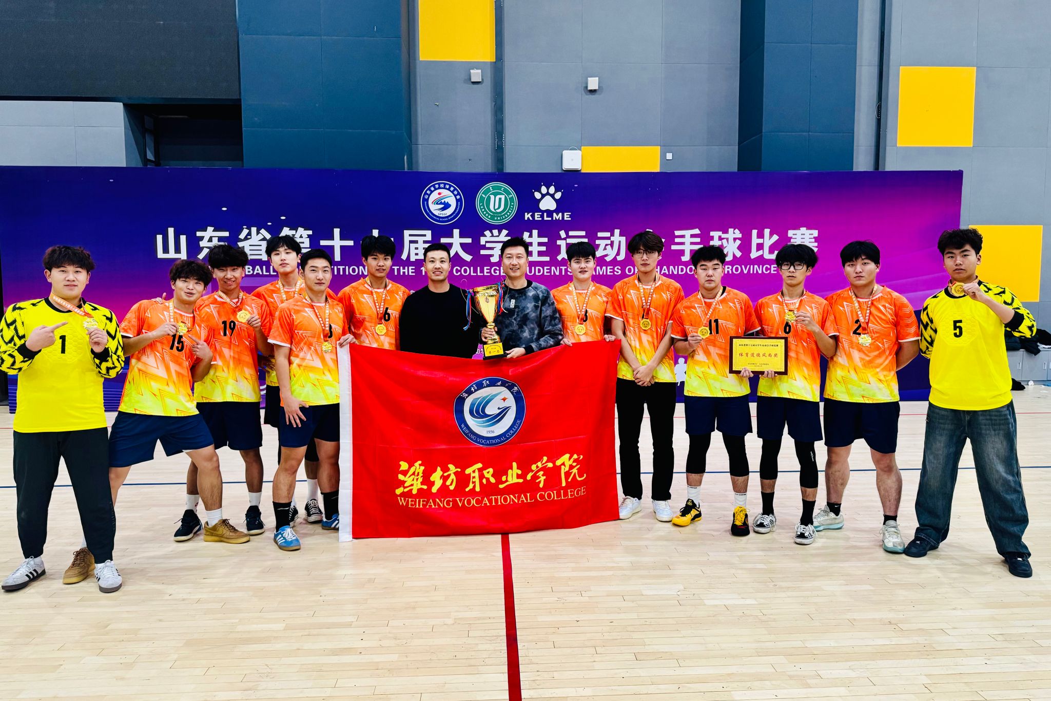 11月24日,山东省第十七届大学生运动会最后一个项目手球比赛在淄博市体育运动学校落下帷幕。我院代表队派出65名选手,先后参加了武术、健美操(啦啦操)、网球、田径、游泳、手球6项比赛,共获得12枚金牌、14枚银牌和6枚铜牌,是学院截至目前获得的最好成绩。学院获评山东省大学生运动会优秀组织奖和体育道德风尚奖。