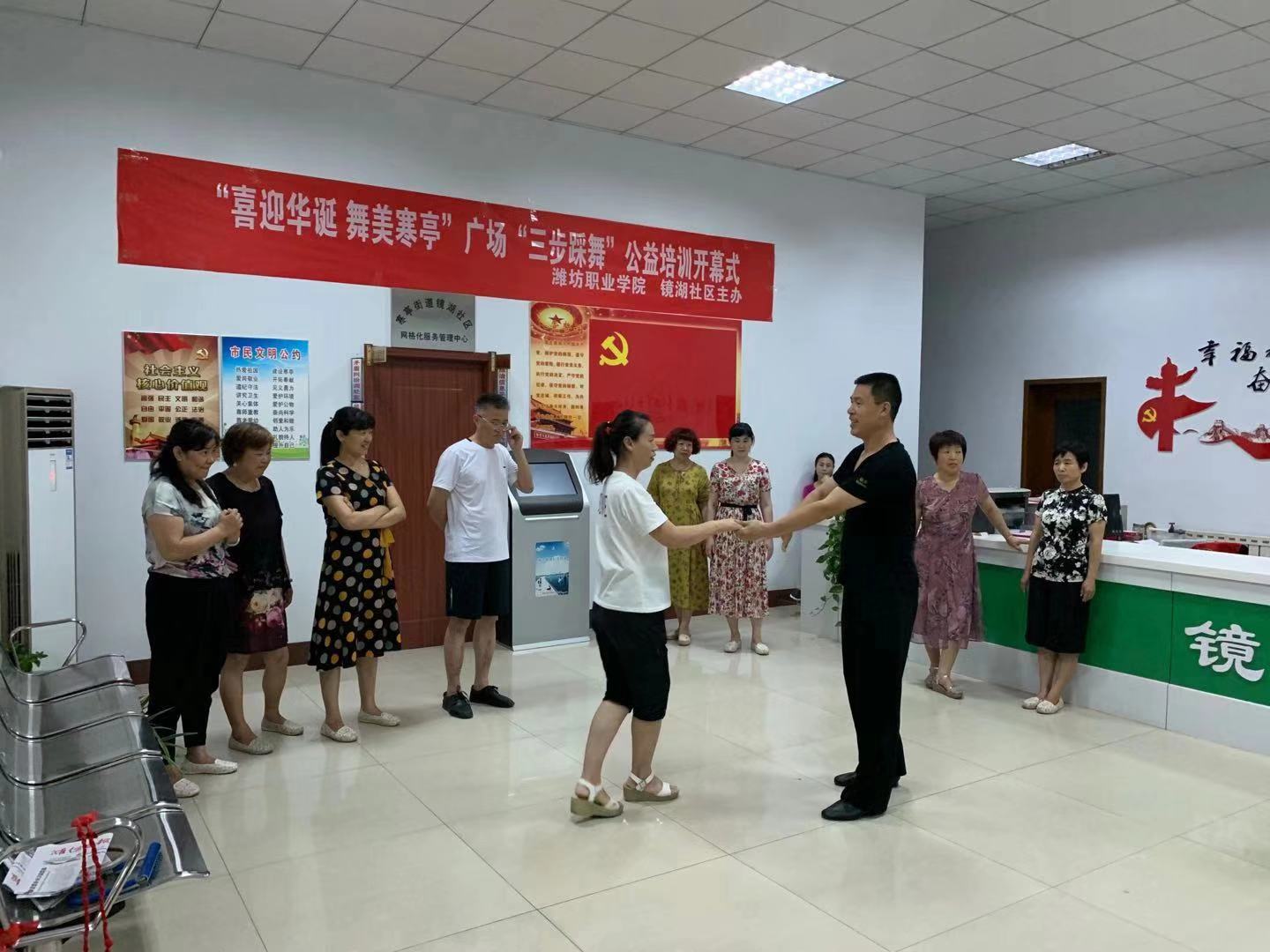 7月23日晚,由通识教育中心、化学工程学院、科技处、资产管理处、纪委监察审计处五支部“双报到”工作小组与寒亭街道镜湖社区共同举办的“喜迎华诞 舞美寒亭”广场健身“三步踩舞”公益培训开幕式在镜湖社区举行,“双报到”工作小组成员、镜湖社区领导、社区居民参加了开幕式并进行了第一场培训。